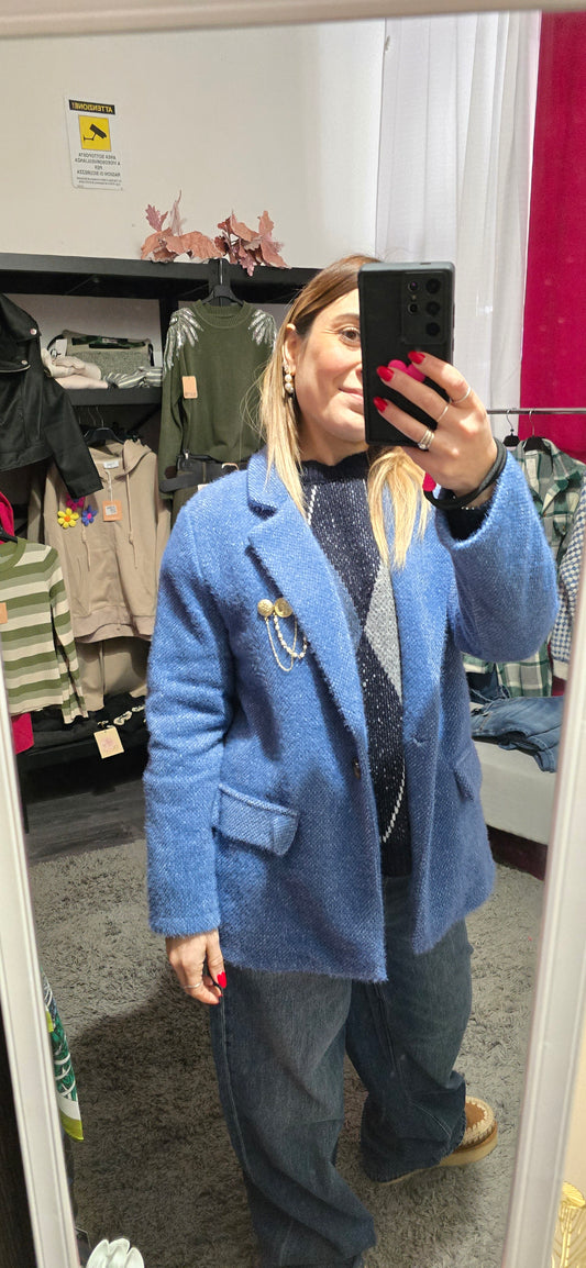 EsauritoBlazer spazzolato celeste con spilla