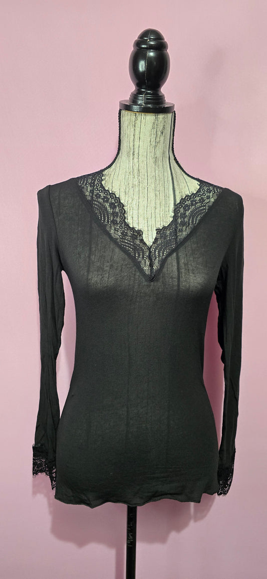 EsauritoMaglietta misto cashmere nera pizzo