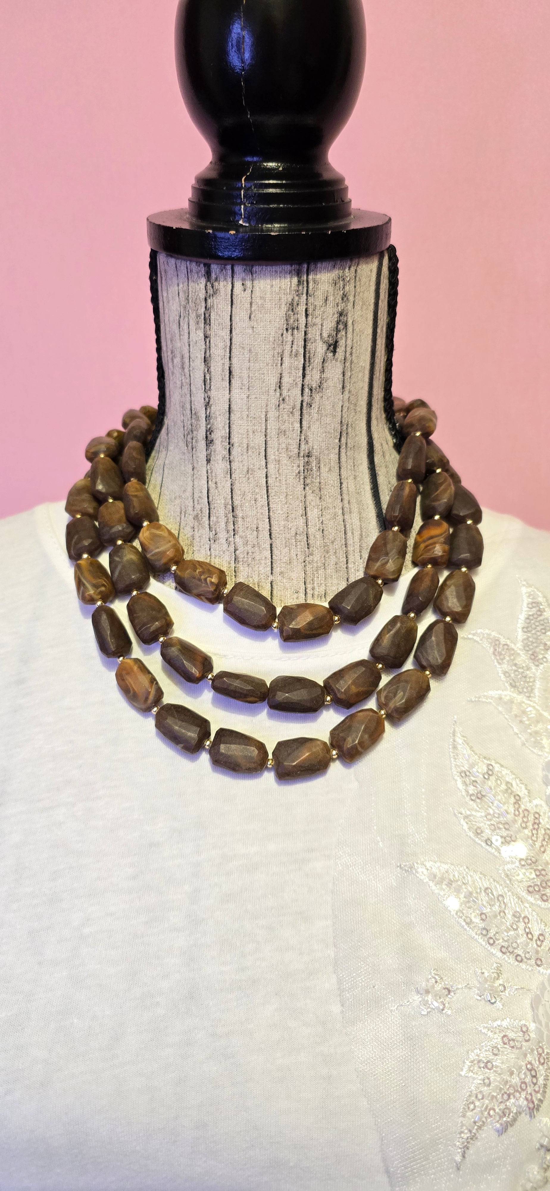 Girocollo elegante realizzato con tre fili in resina di qualità, nella tonalità sofisticata del moro. Un accessorio versatile che si adatta perfettamente a qualsiasi look, dal casual al più raffinato. Il design minimalista e contemporaneo lo rende ideale per chi ricerca semplicità senza rinunciare allo stile. Perfetto da indossare da solo o in abbinamento con altri gioielli per creare composizioni personali e originali.