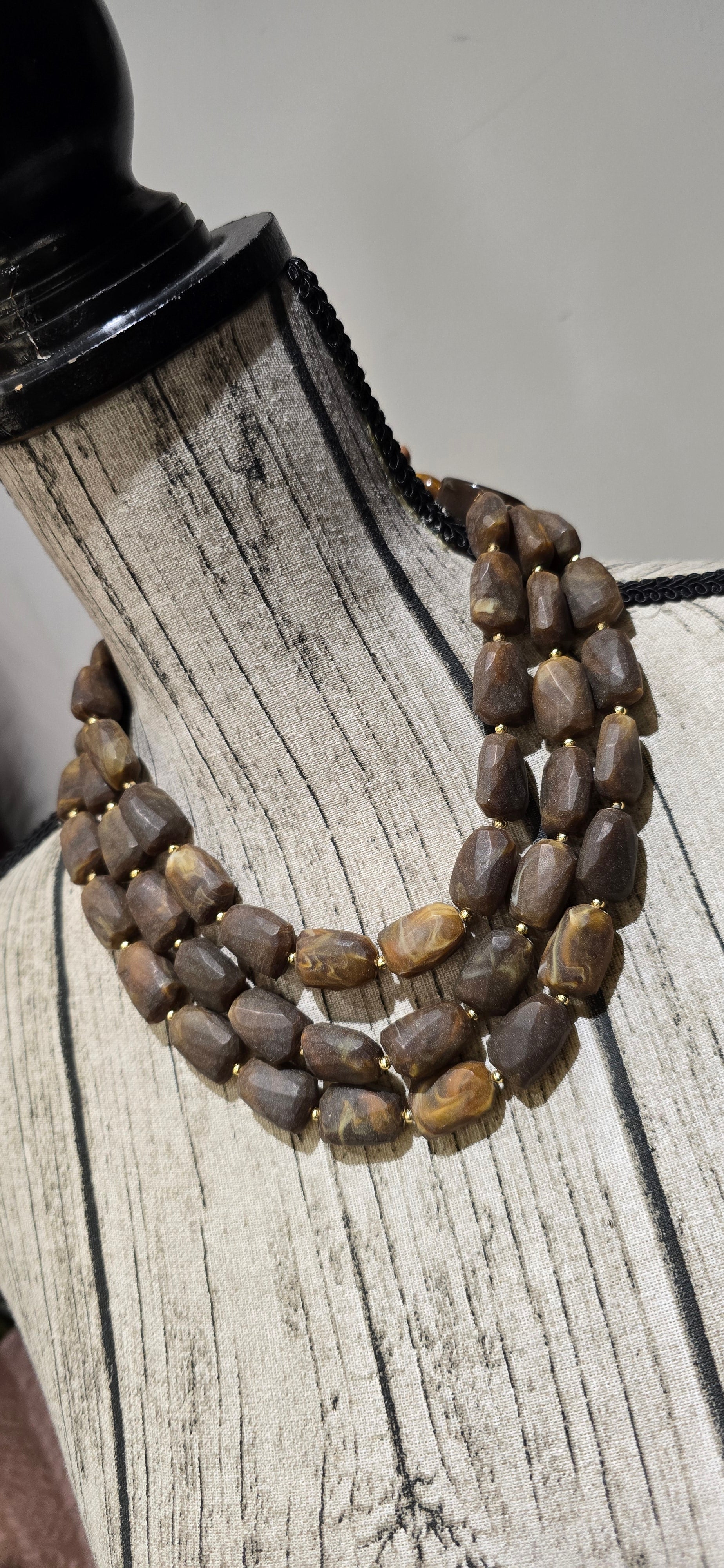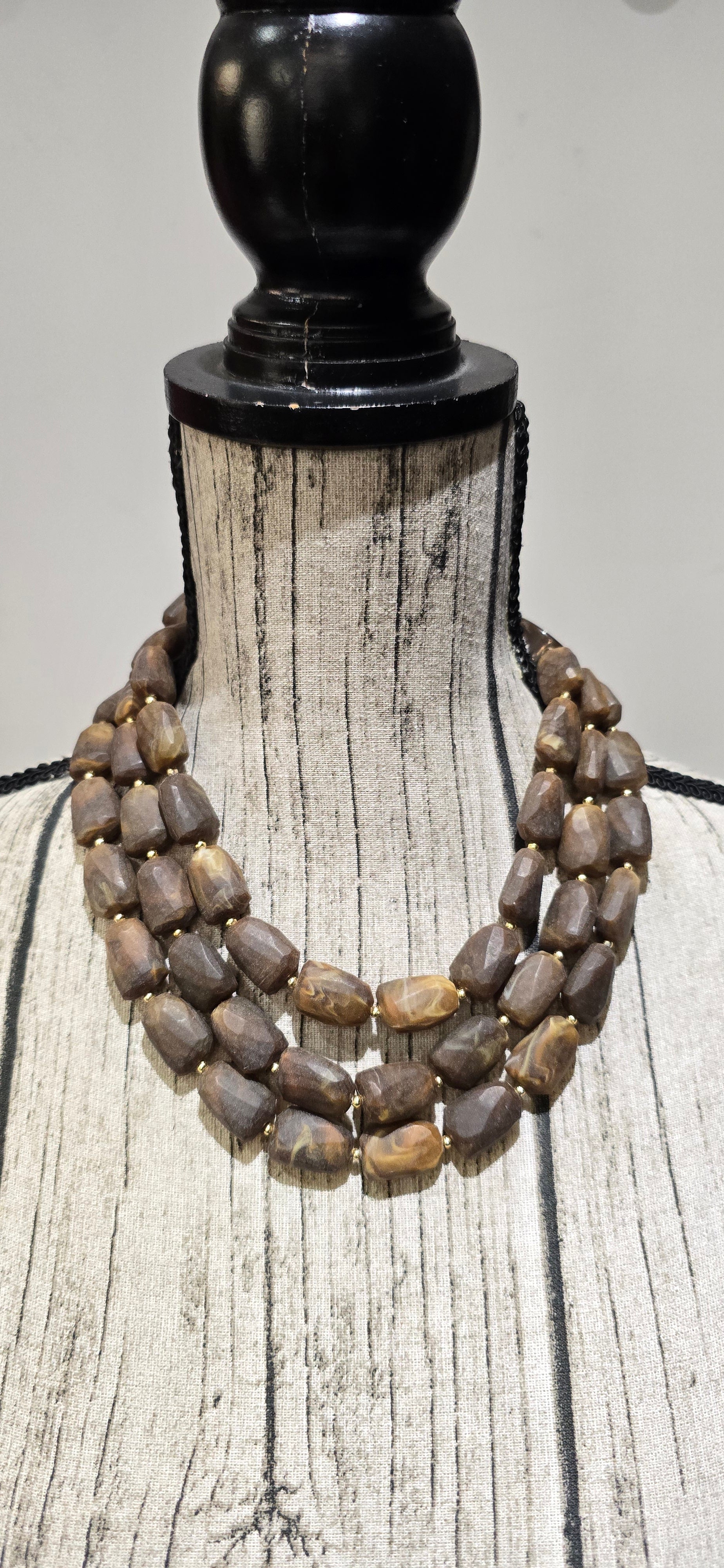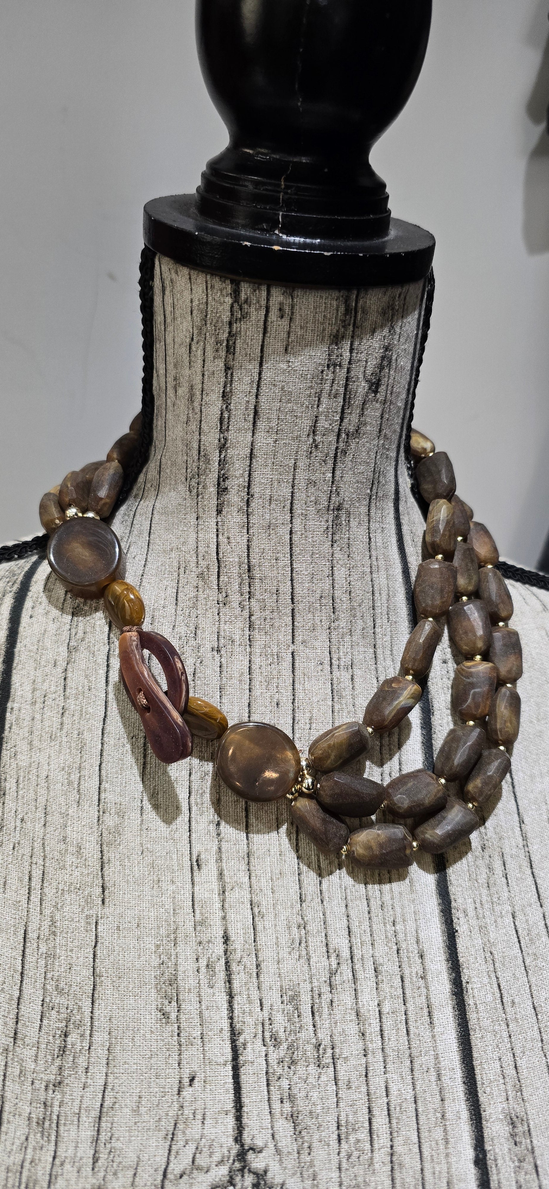 è composto da tre fini e chiusura a bottone in barilotto di resina leggera. Aggiunge un tocco di eleganza e sofisticatezza al tuo look. Perfetto per chi ama i dettagli raffinati e di alta qualità.