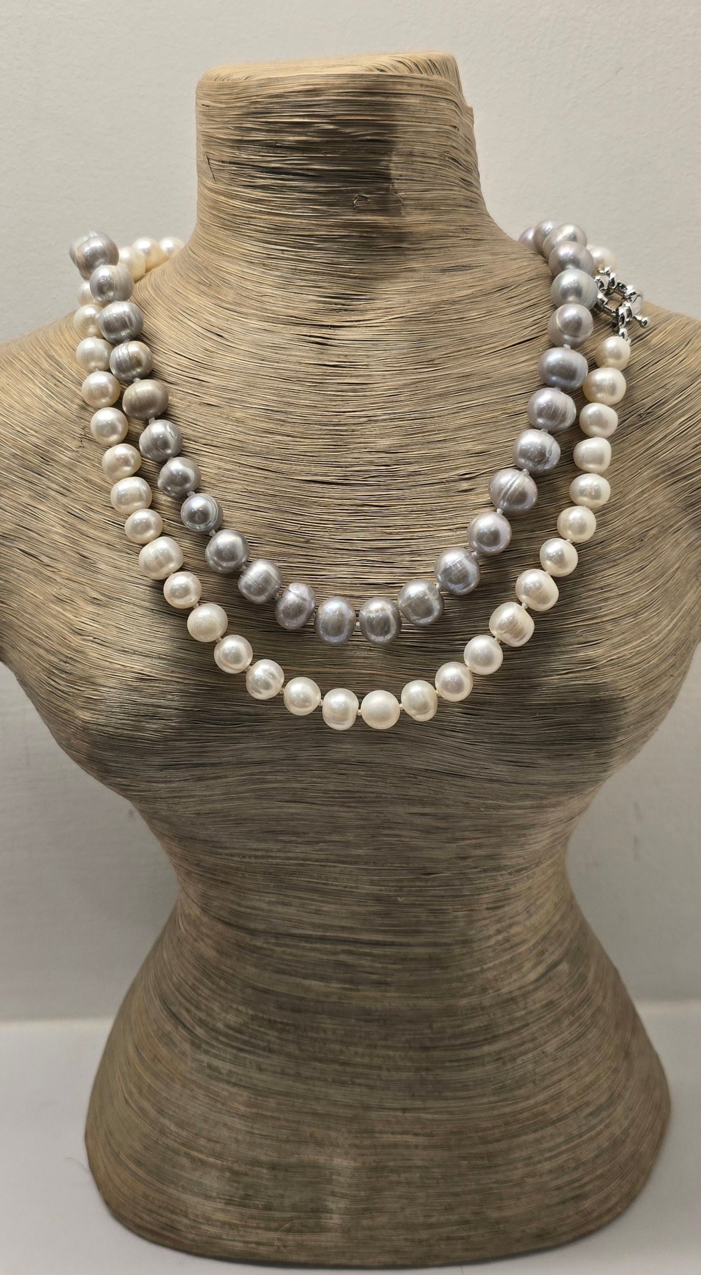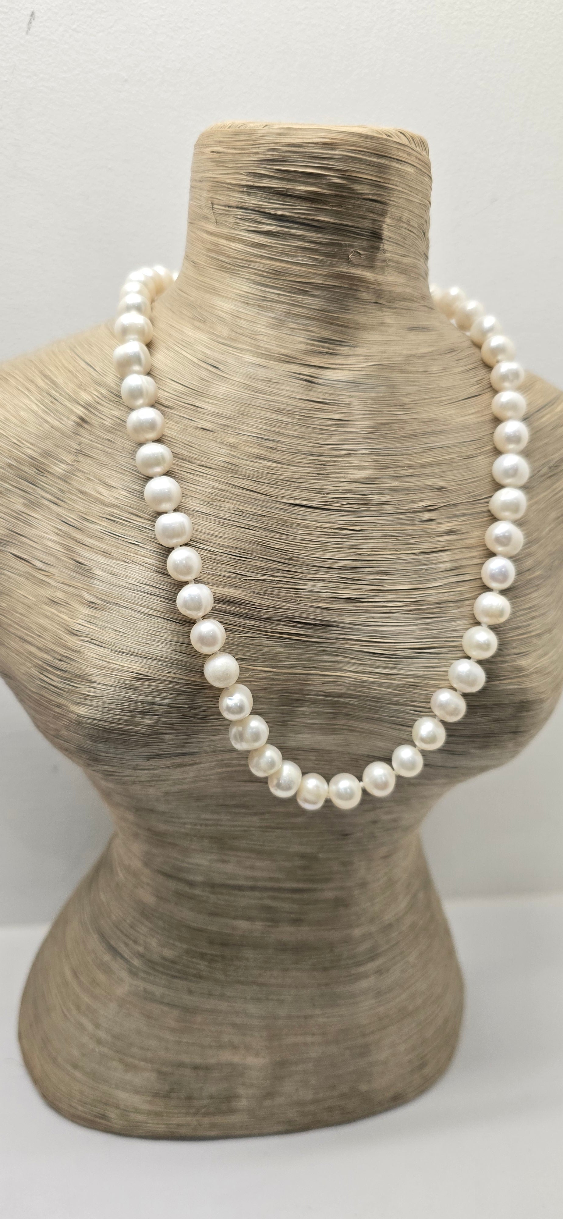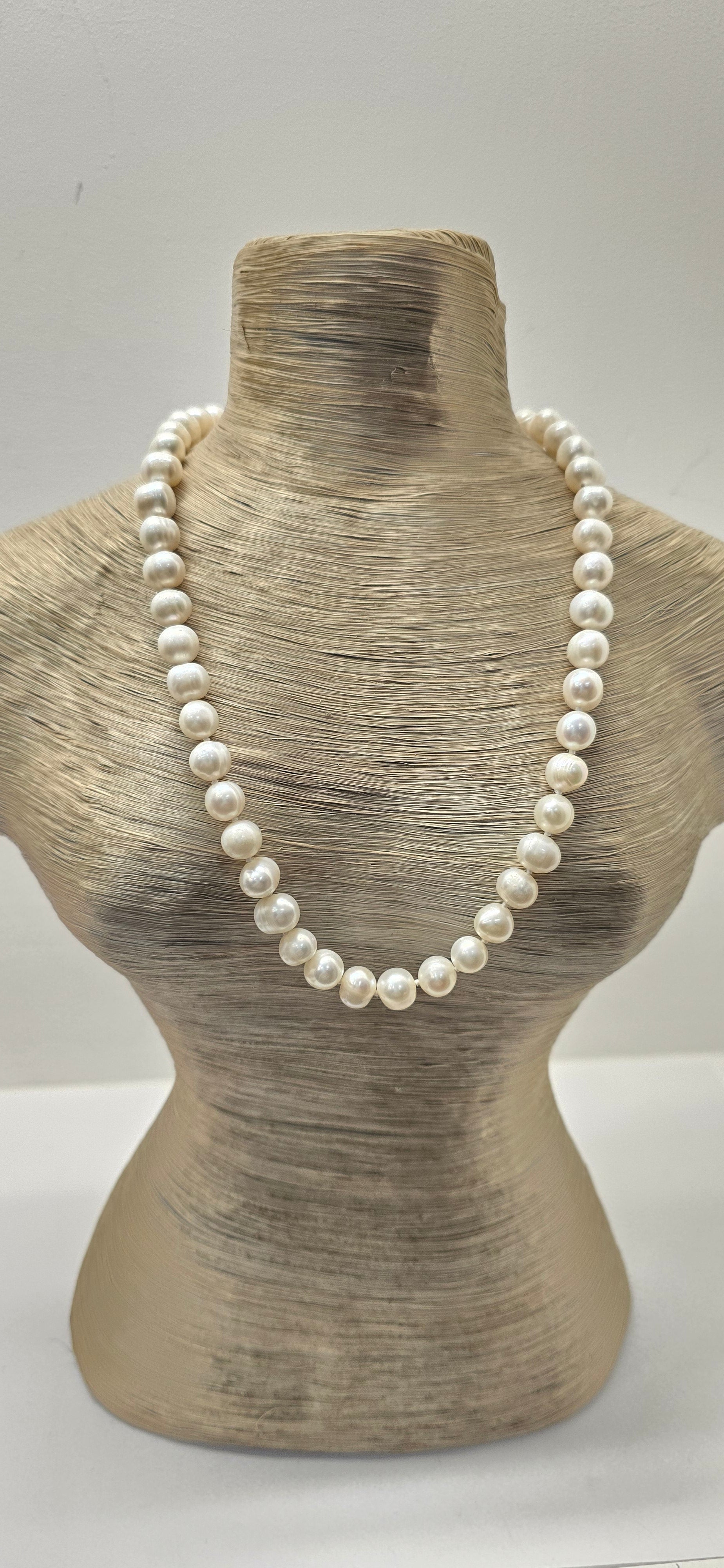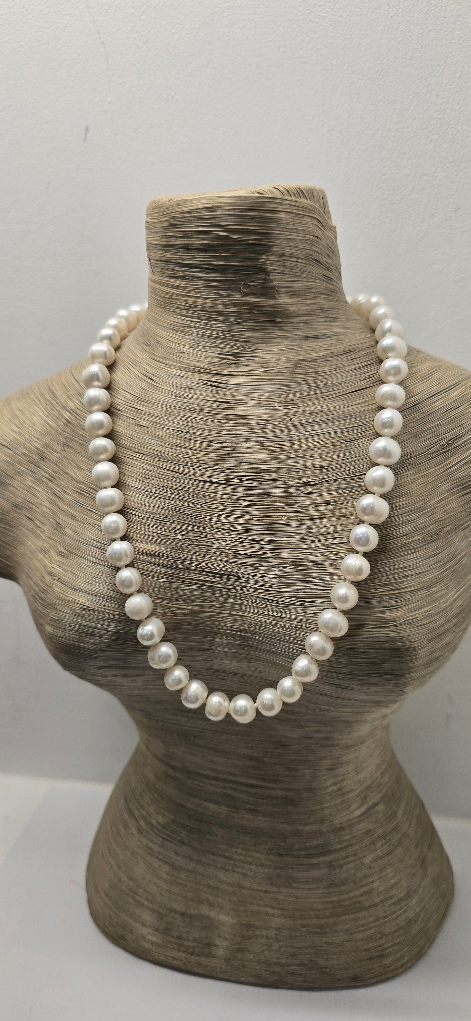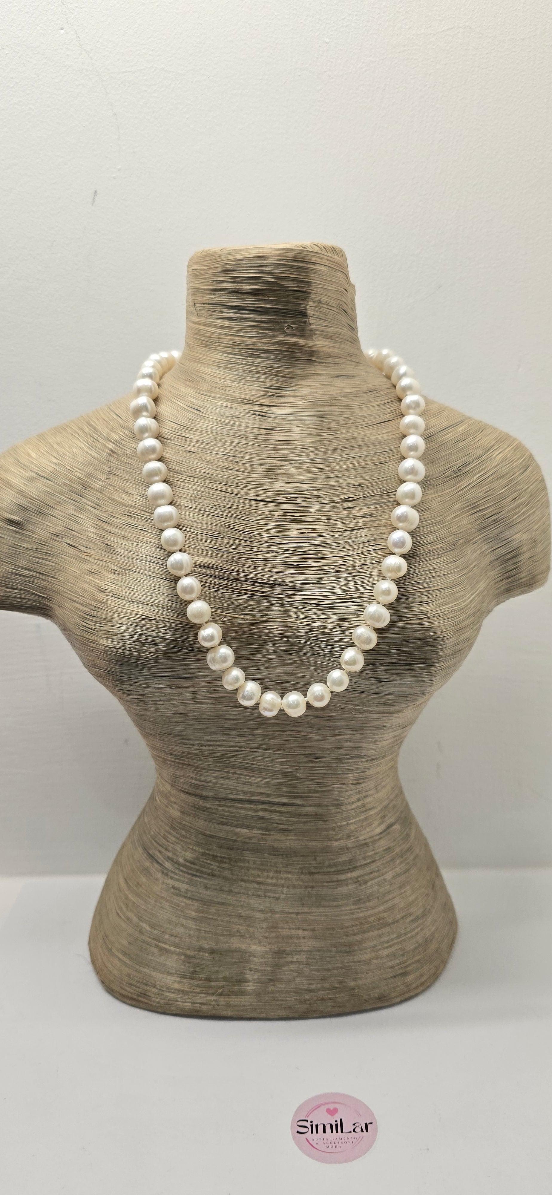 COLLANA PERLE DI FIUME 8-9MM 45CM A NODI CON CHIUSURA METALLO