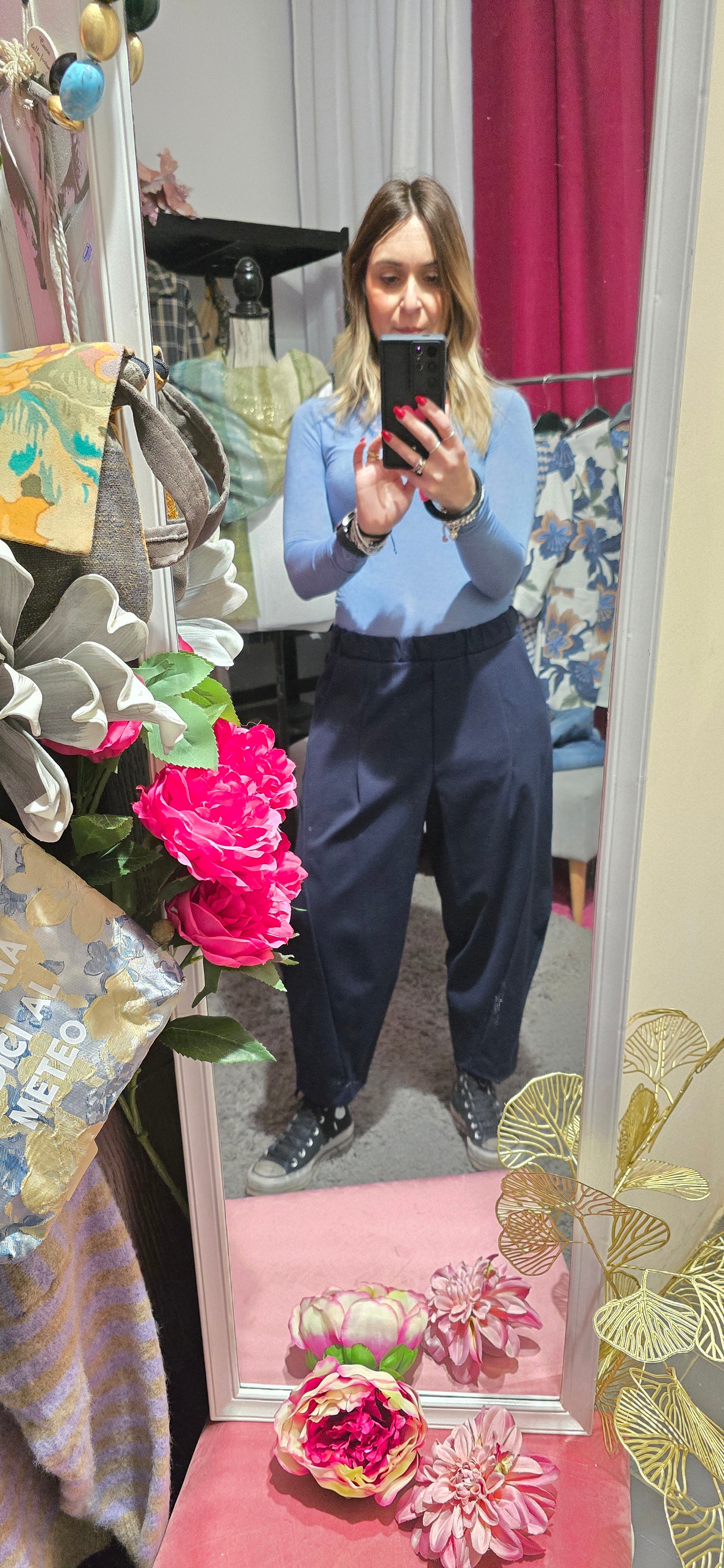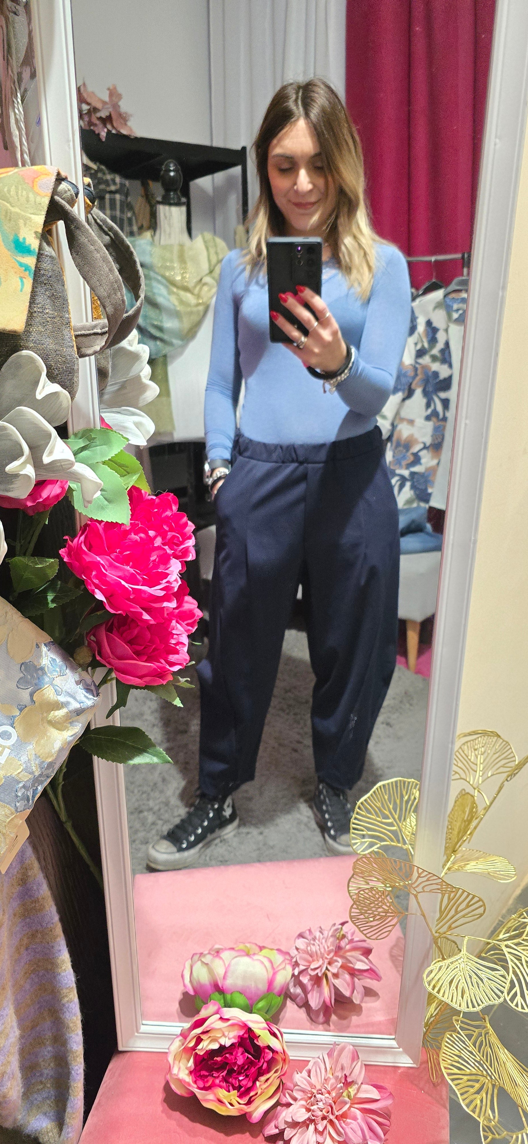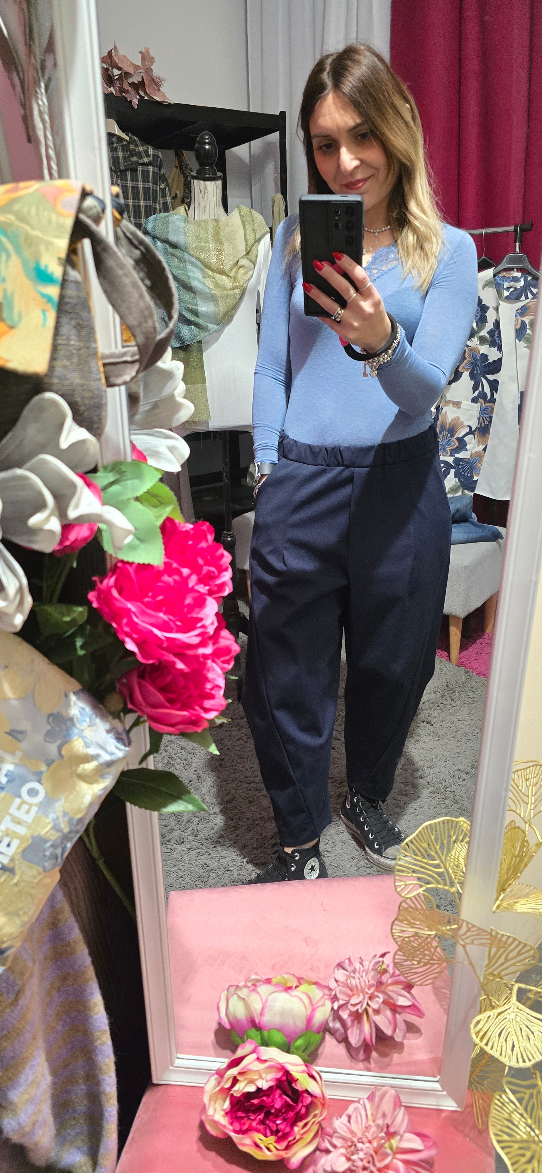 Pantalone jogger in tessuto punto milano, la scelta perfetta per chi ricerca comfort senza compromessi. La vita elasticizzata si adatta al tuo corpo garantendo una vestibilità impeccabile durante tutta la giornata, mentre la lunghezza alla caviglia crea una silhouette moderna e raffinata. Disponibile in taglia unica, questo capo versatile si abbina facilmente a qualsiasi outfit, dal casual al più elegante. Indossa il benessere con stile.