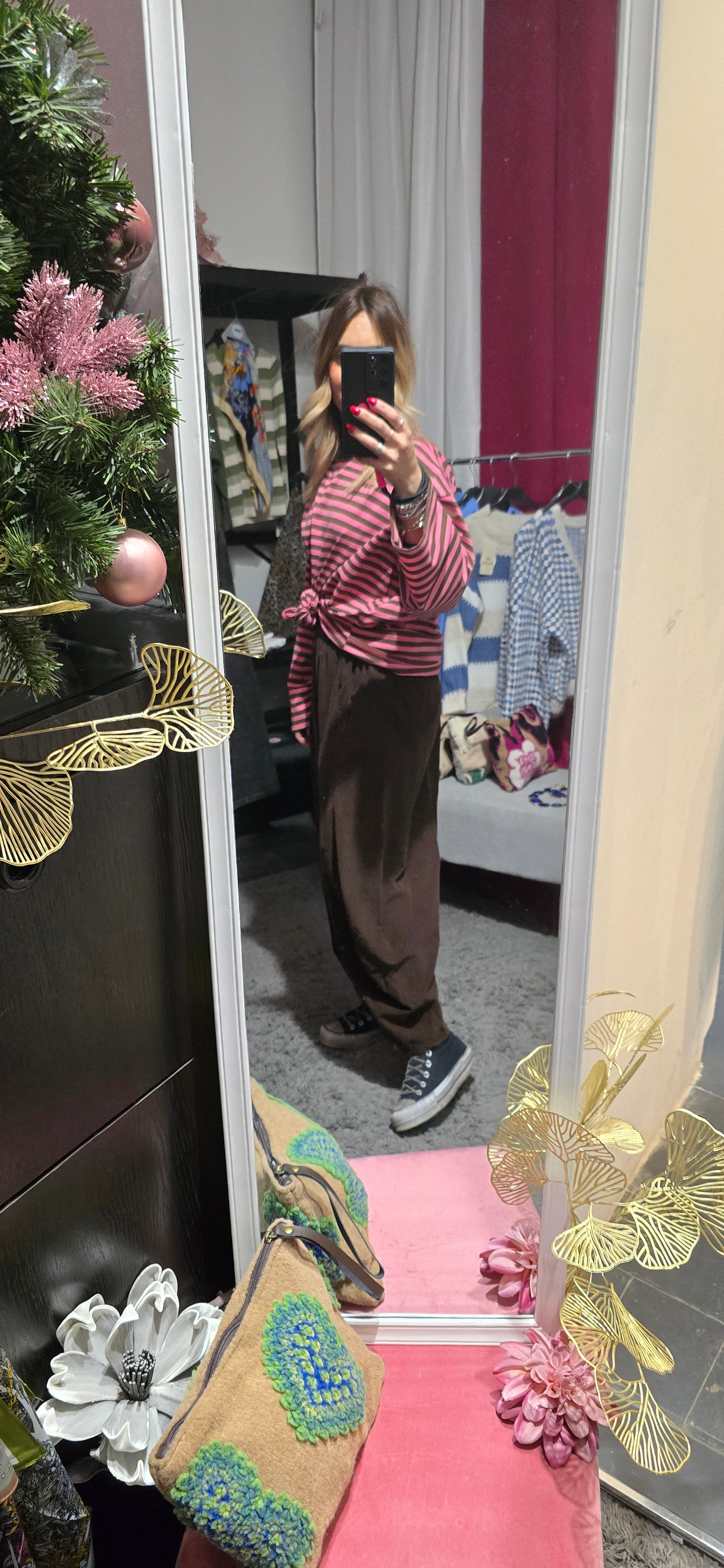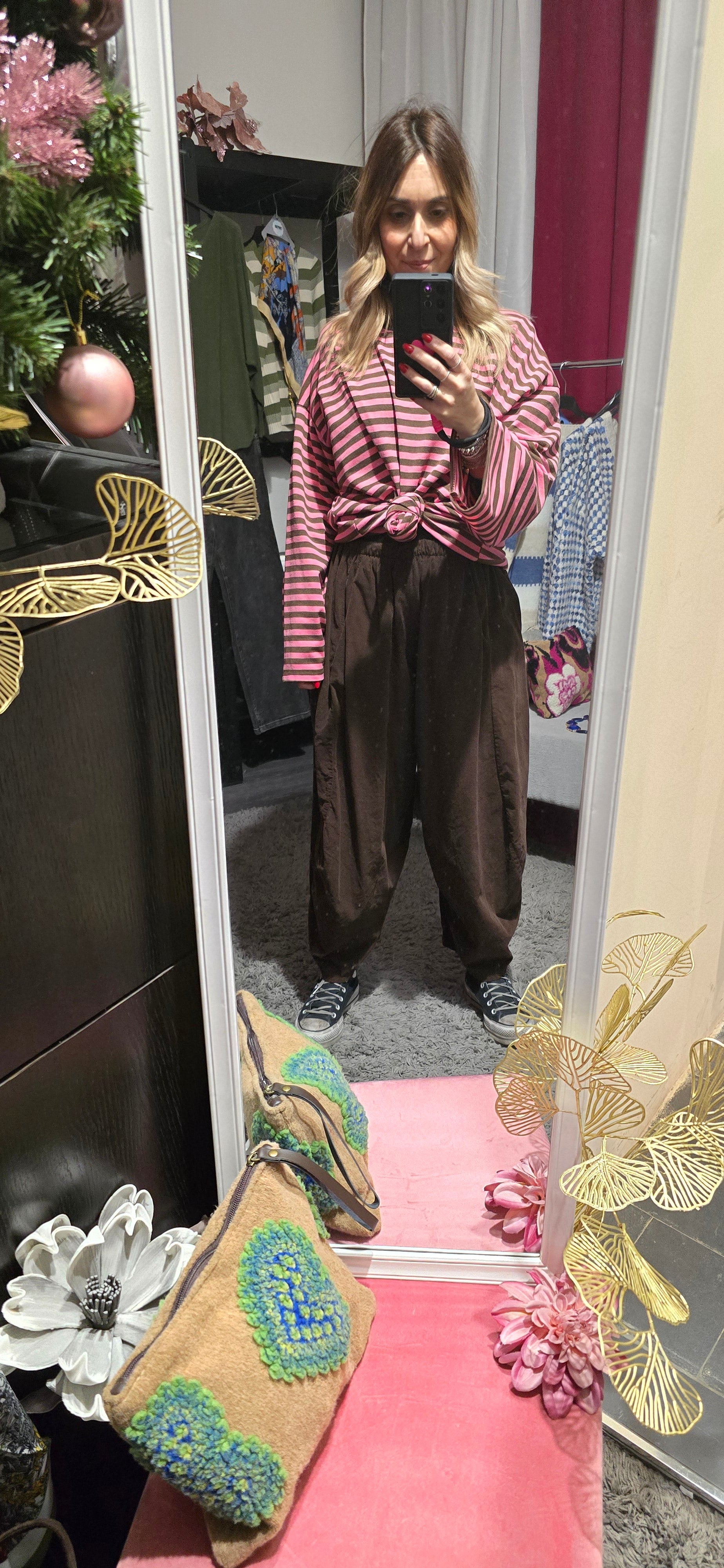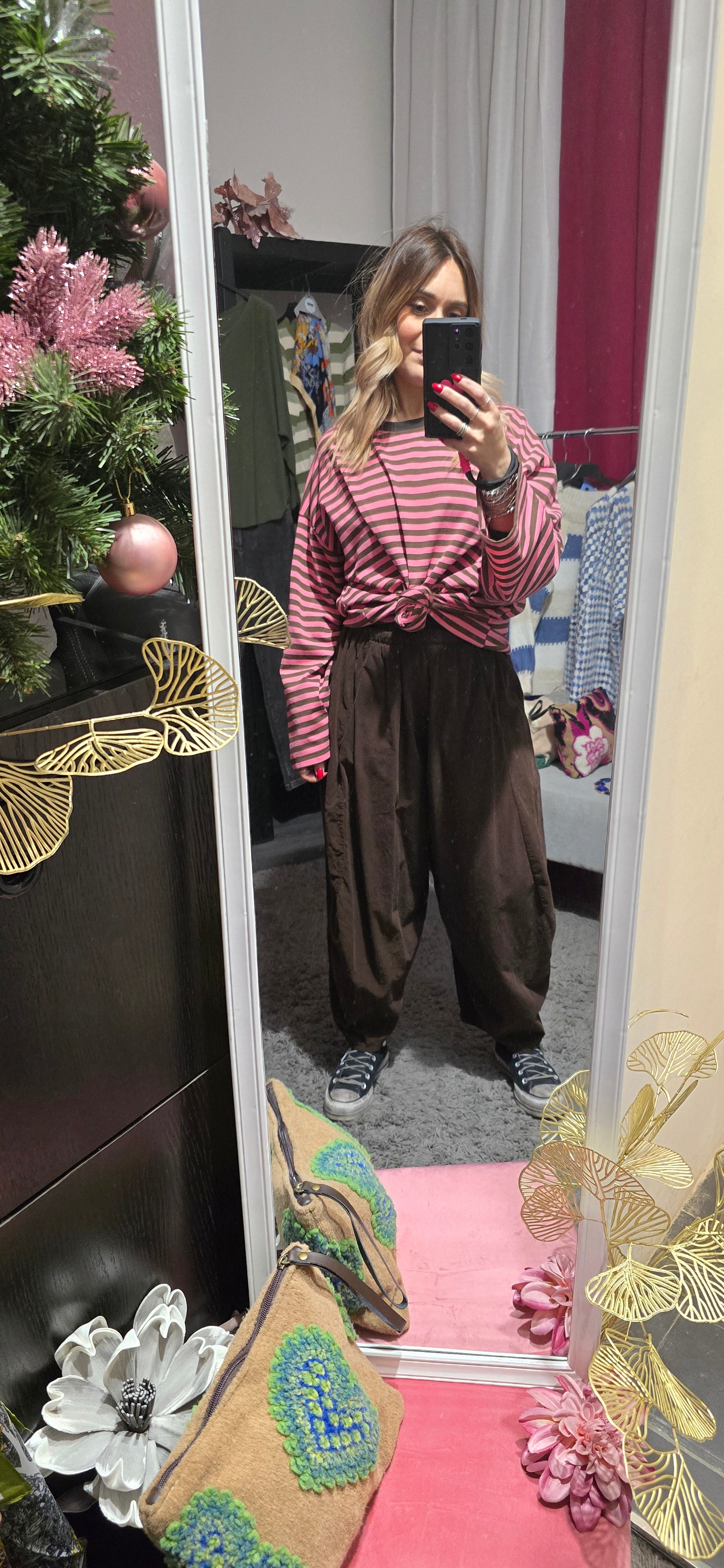 Pantalone in velluto a coste dal taglio baggy che unisce comfort e stile contemporaneo. La silhouette ampia e rilassata garantisce libertà di movimento, mentre il tessuto morbido e strutturato valorizza la figura. Il colore nero intenso si abbina facilmente a qualsiasi outfit, rendendolo un pezzo versatile e imprescindibile nel guardaroba. Perfetto per chi ricerca un look casual ma curato, ideale per il giorno e la sera.