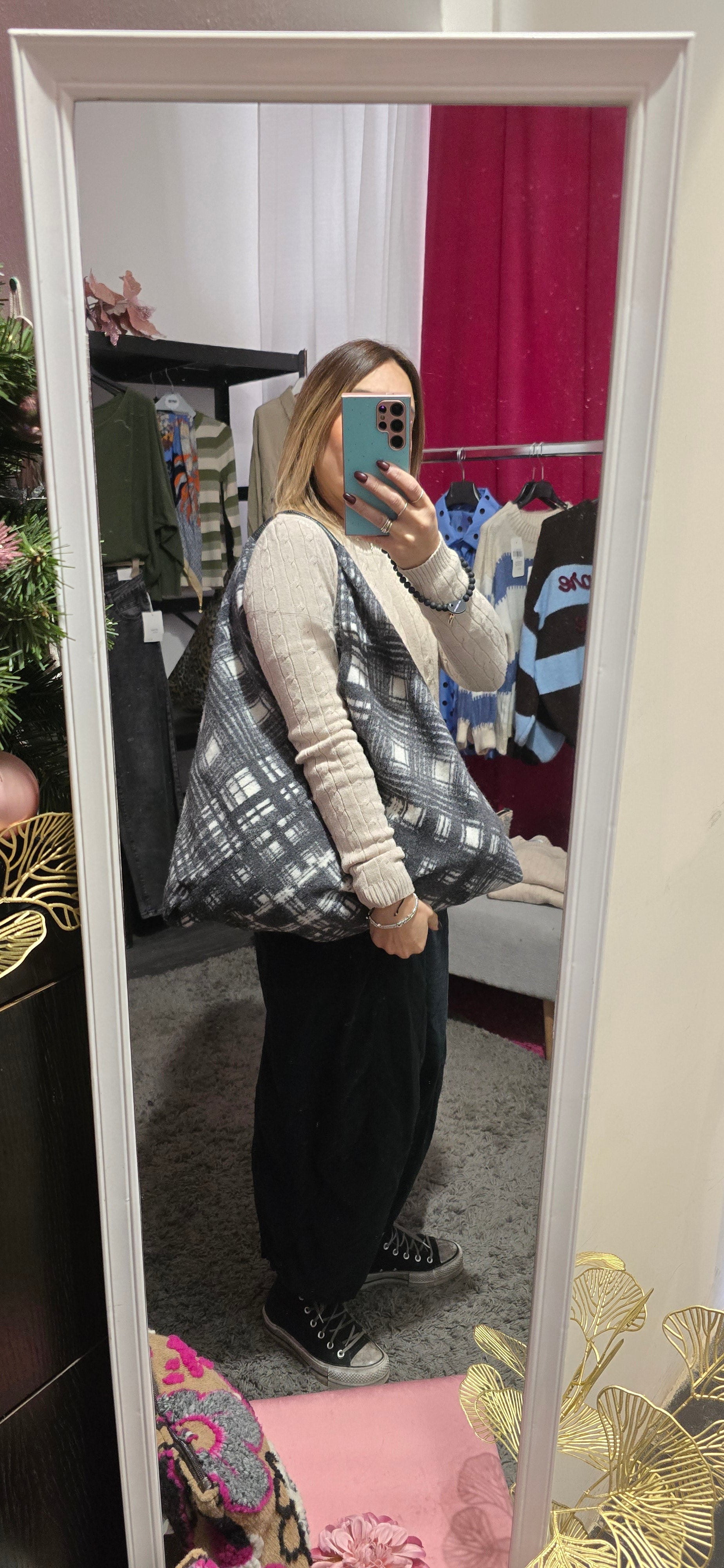 La Fuffy bag quadri grigio