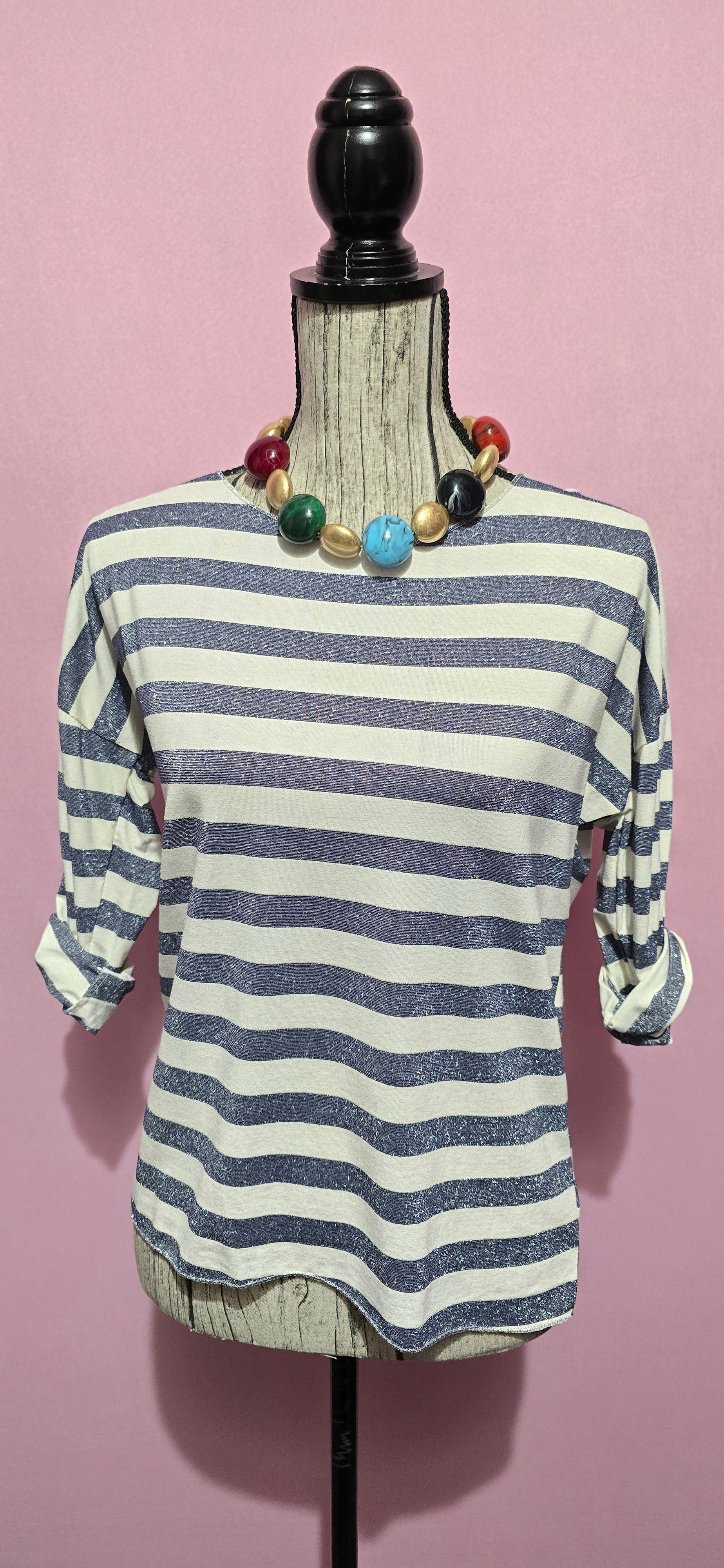 Maglia righe lurex blu