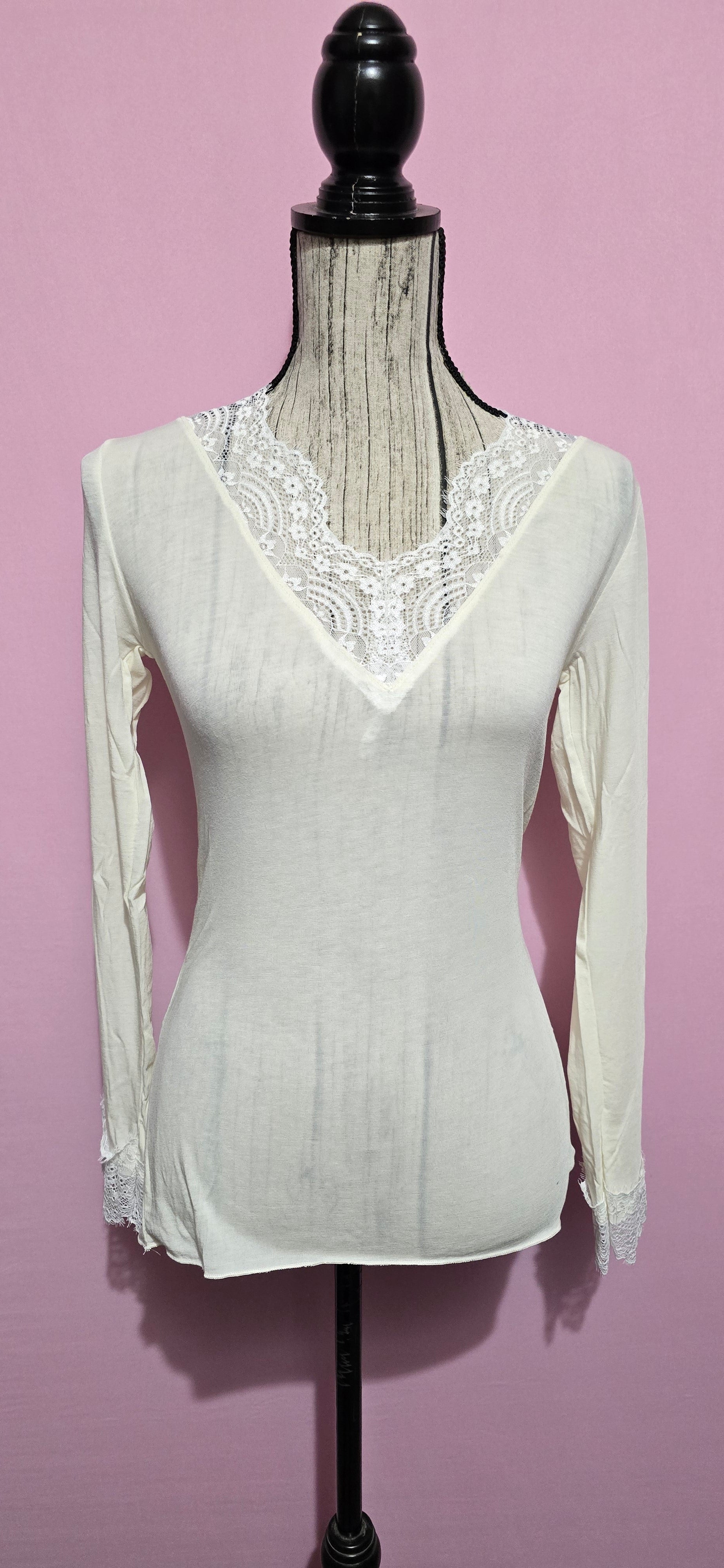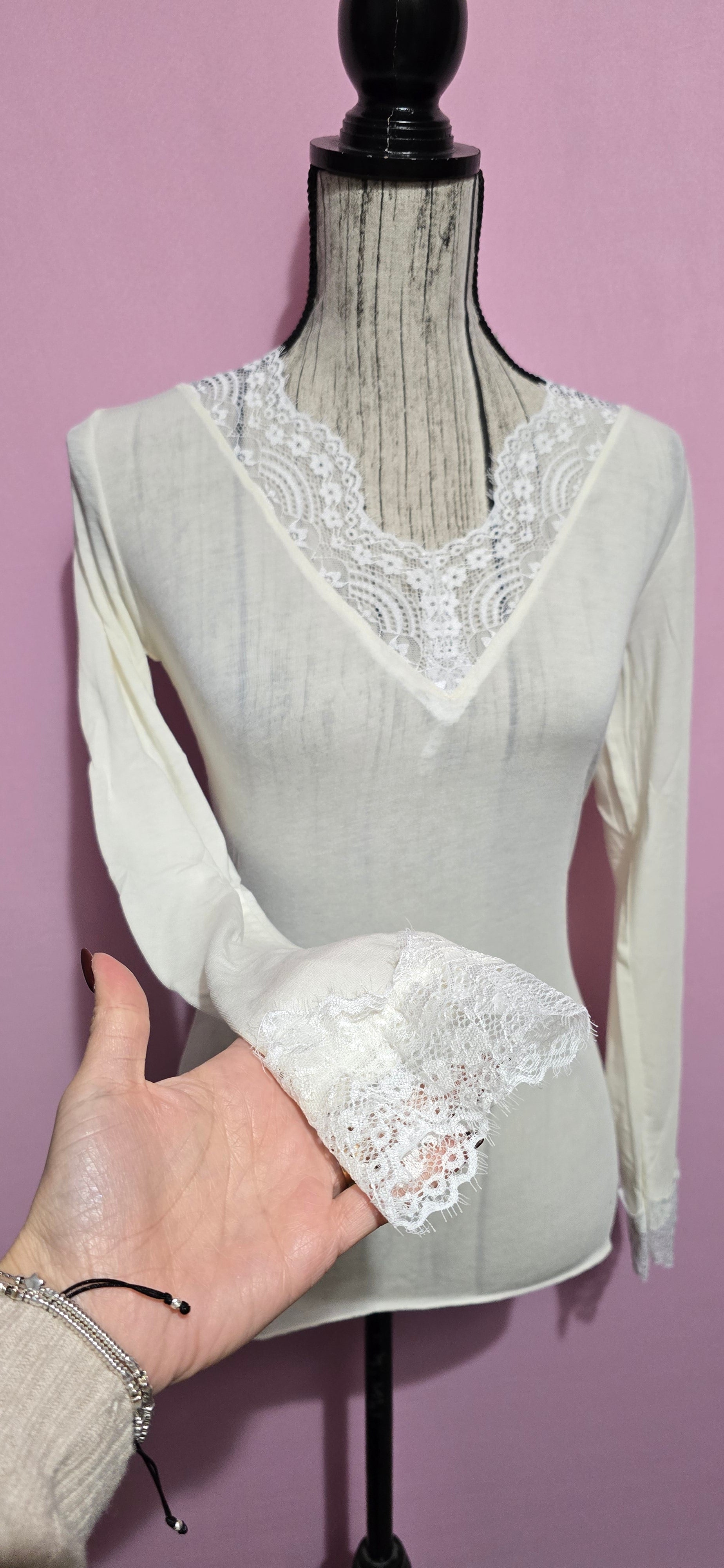 Maglietta misto cashemere pizzo