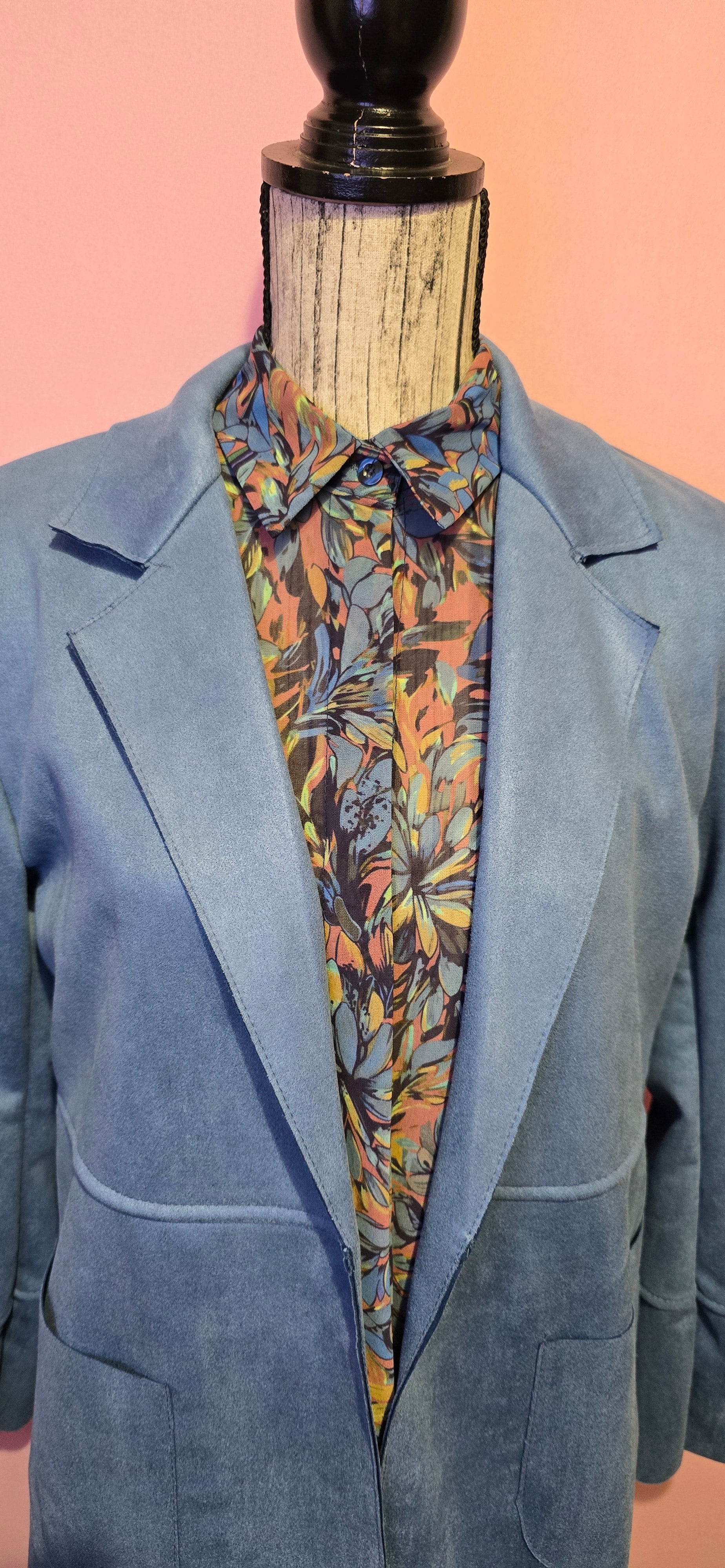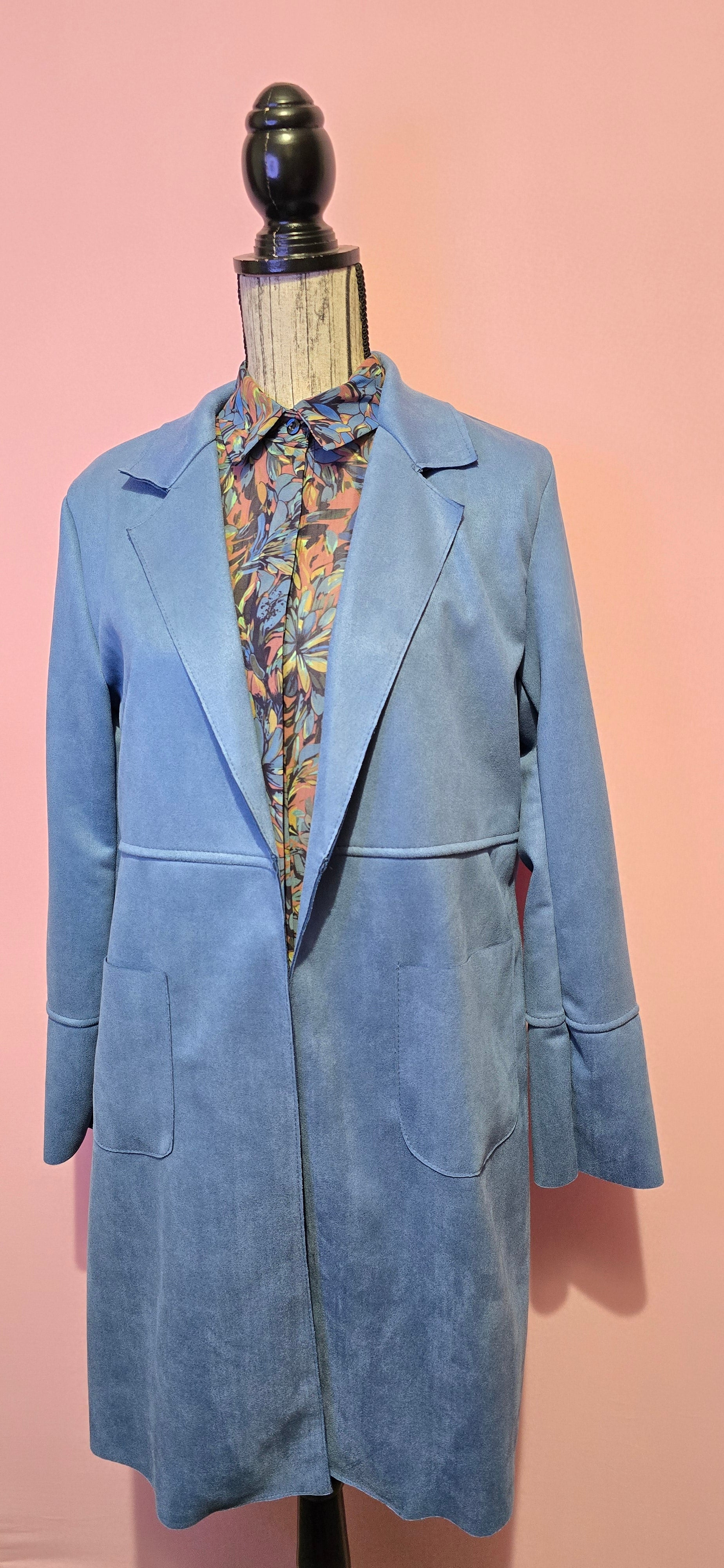 Il spolverino scamosciato è un capo elegante e versatile, realizzato in morbido materiale scamosciato. La lunghezza e il collo rever offrono una vestibilità raffinata, mentre le maniche lunghe garantiscono comfort. Questo spolverino è ideale per completare outfit formali e casual con stile.