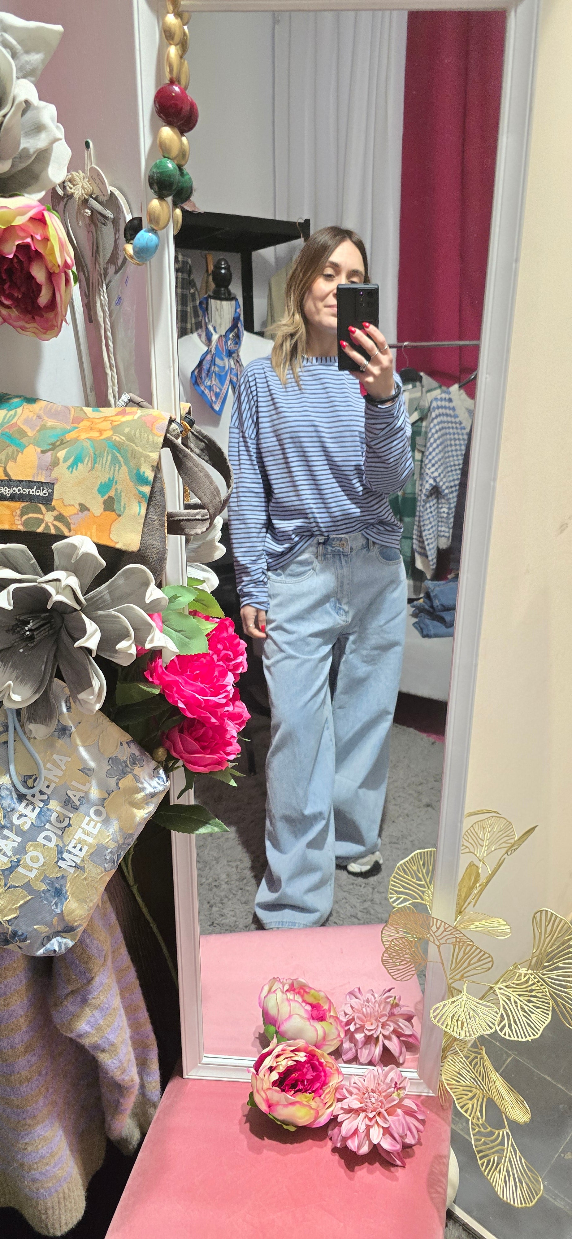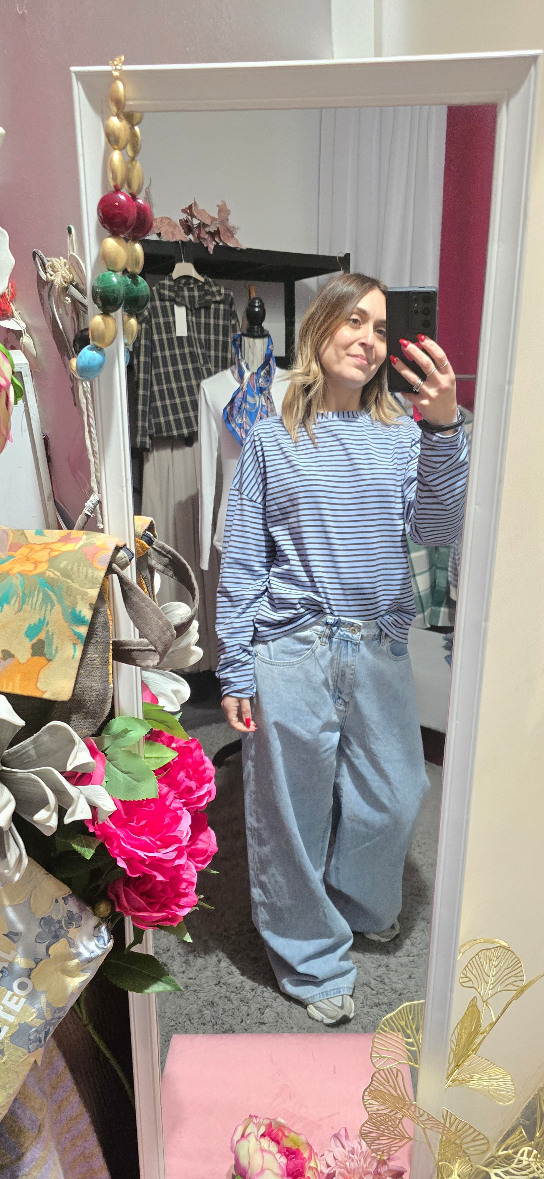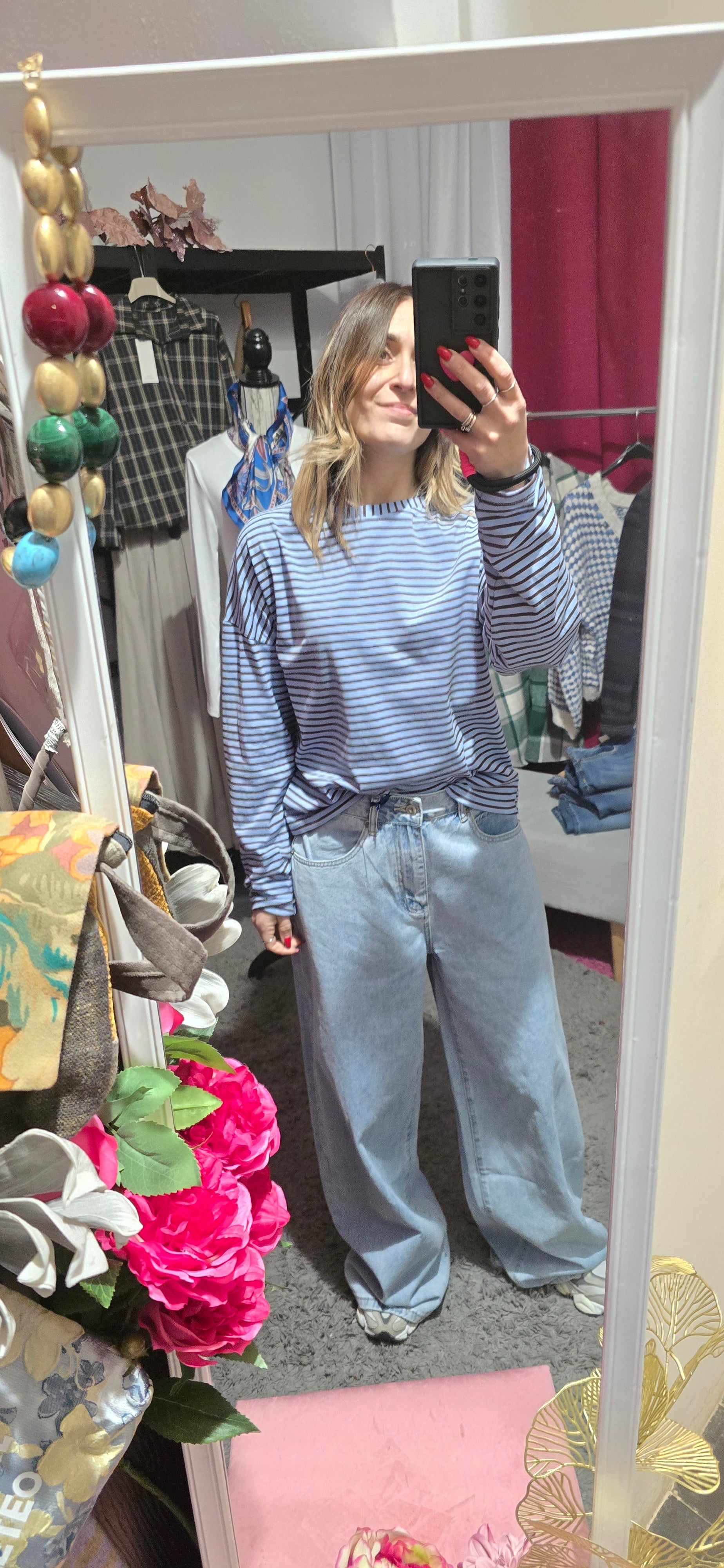 T shirt righe celeste /moro