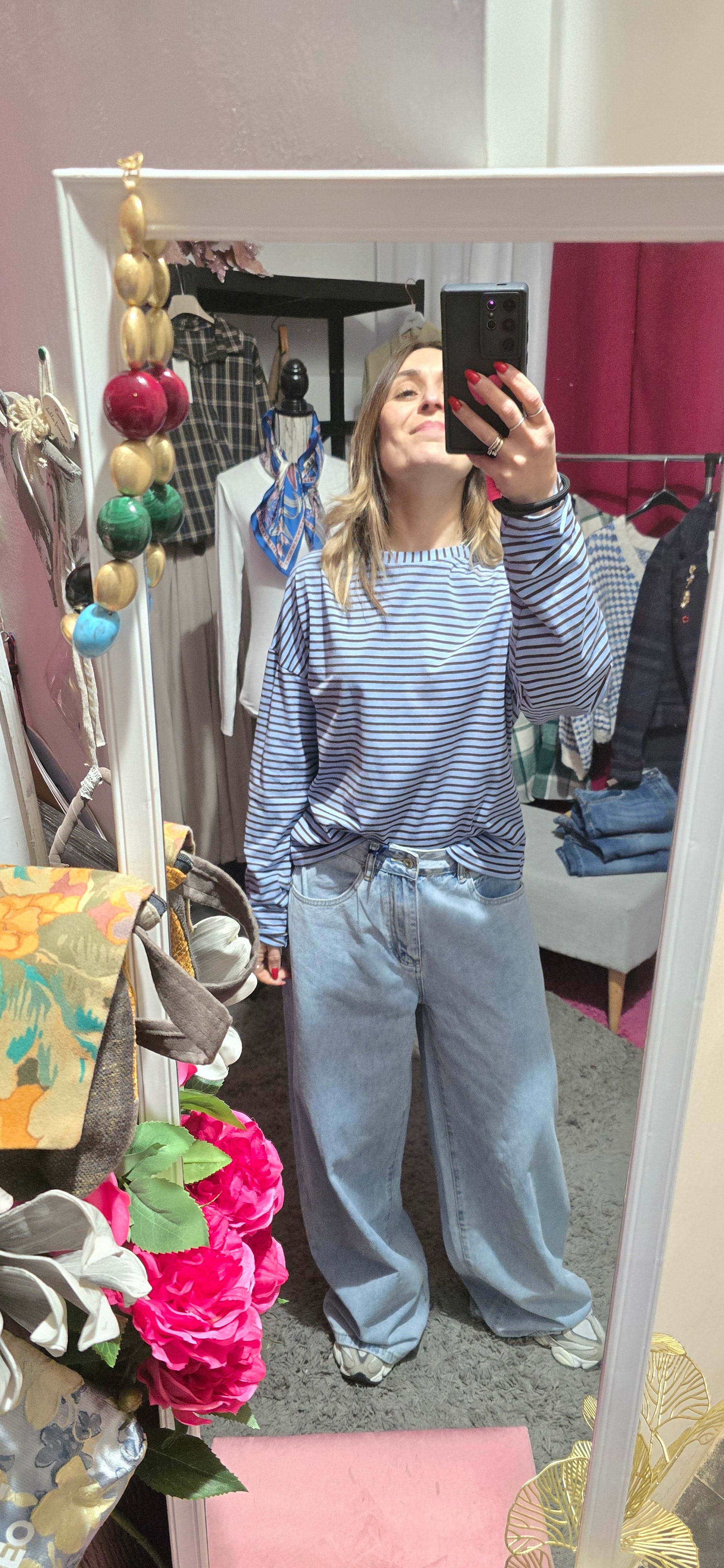 T-shirt in cotone con righe alternate celeste e marrone. Un capo versatile e confortevole, perfetto per uno stile casual e rilassato. Le righe orizzontali creano un effetto visivo dinamico, mentre la qualità del tessuto garantisce morbidezza e durabilità nel tempo. Ideale da indossare in qualsiasi stagione, si abbina facilmente con jeans, pantaloni chino o shorts per un look senza sforzo.