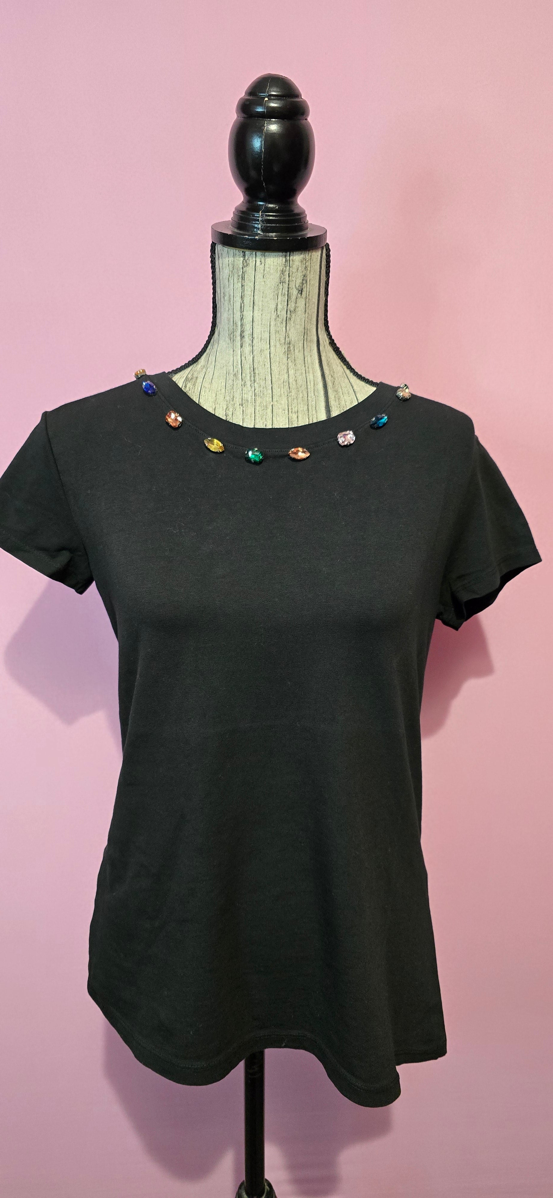T shirt strass nera